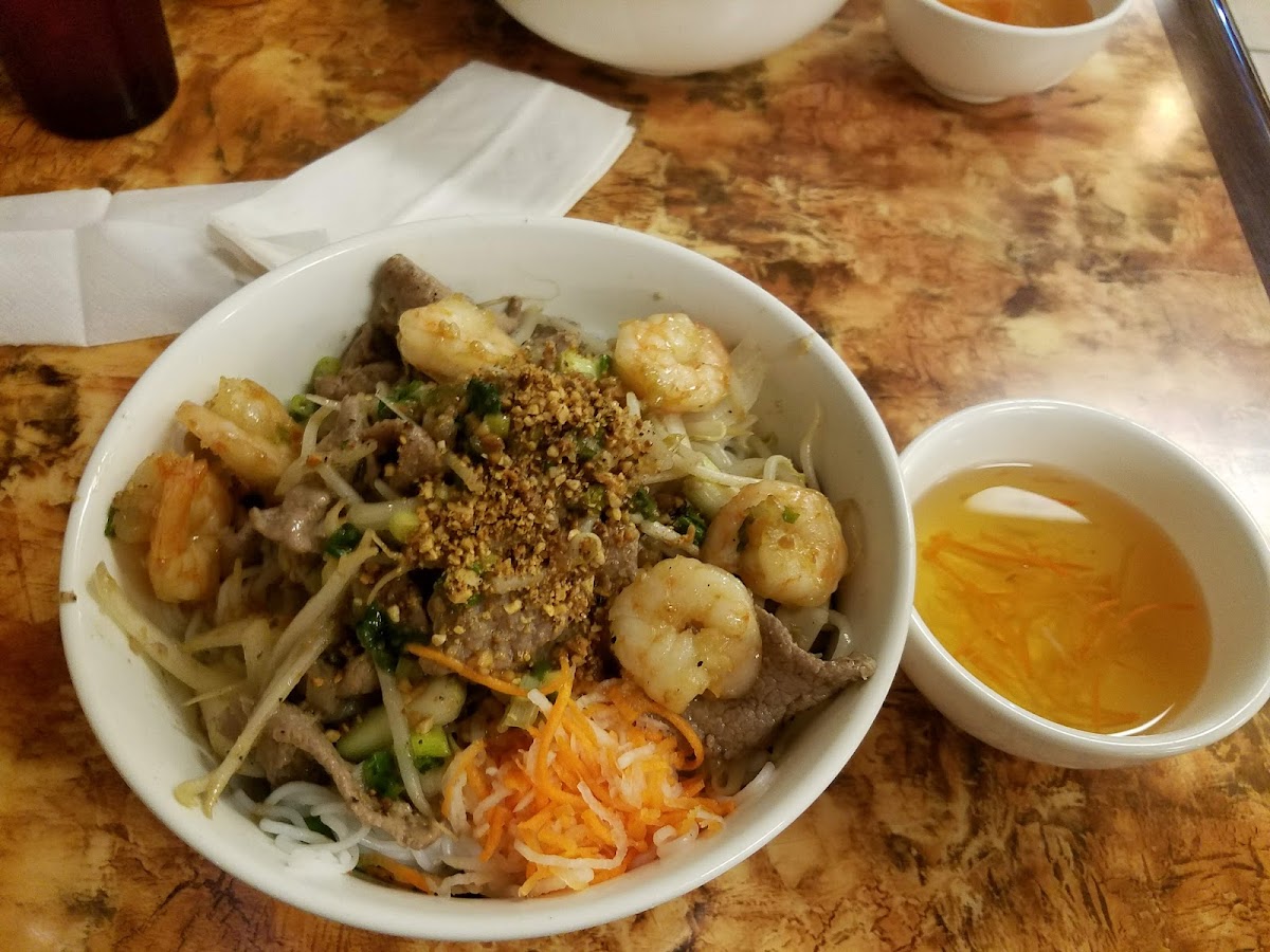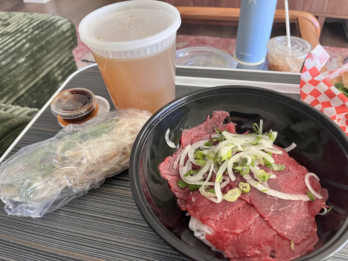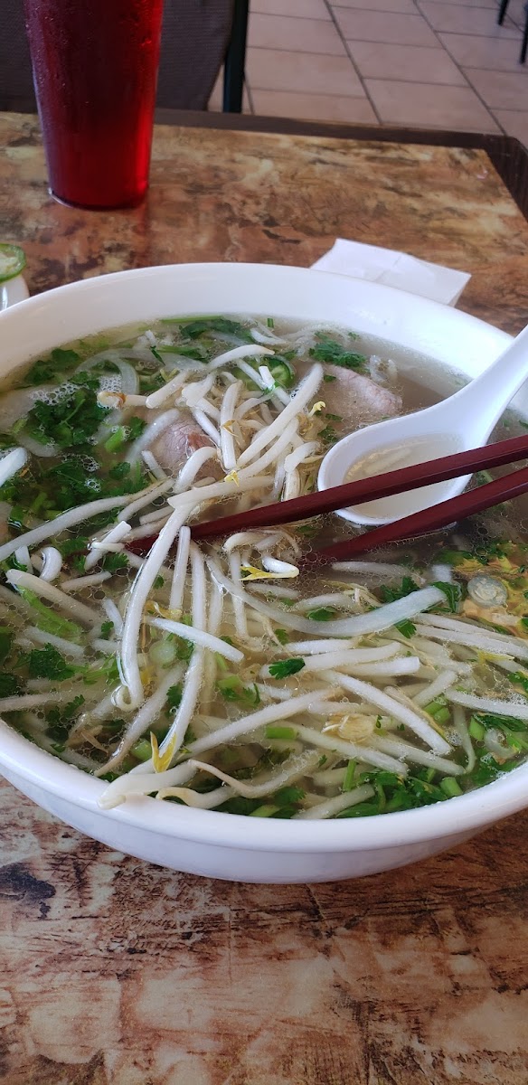 I got the steak/beef pho. The broth is a bit sweet to my liking but once I add in the sauces and lime, delicious!! The pho is always super comforting. I’ve also gotten shrimp spring rolls and those were yummy too. The sauce for it is different from the usual peanut sauce I’ve had but, it was still good! When I first went here the owner spoke sternly. But, after that he has been pretty welcoming (still can be stern but I don’t take it to heart). When I crave pho, this is my go to spot.